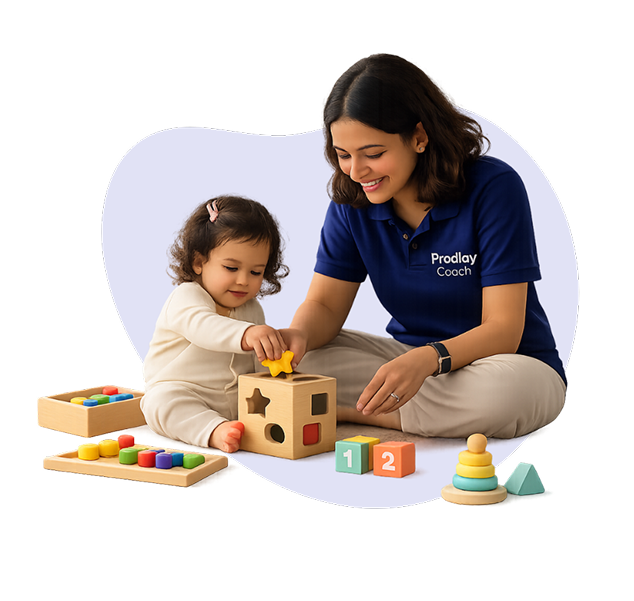 Prodigy Pathway is a screen-free program for children aged 0–2 years, conducted at your home by certified & trained coaches, with a thoughtfully designed curriculum to build steady foundations—so learning quietly compounds over time.